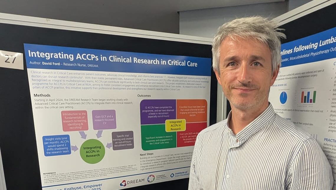 David, one of our Research Nurses, showcased his poster on Integrating ACCP’s in Clinical Research in Critical Care at the EEE Conference last week and won 'best rapid poster presentation'!